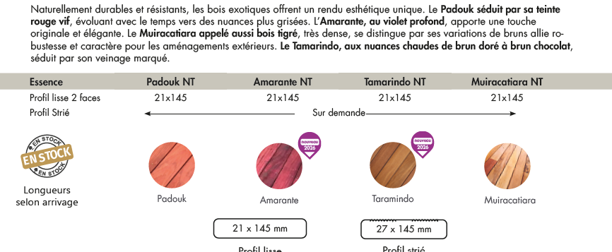 - Terrasses exotique Padouk, Amarante, Tamarindo, Muiracatiara